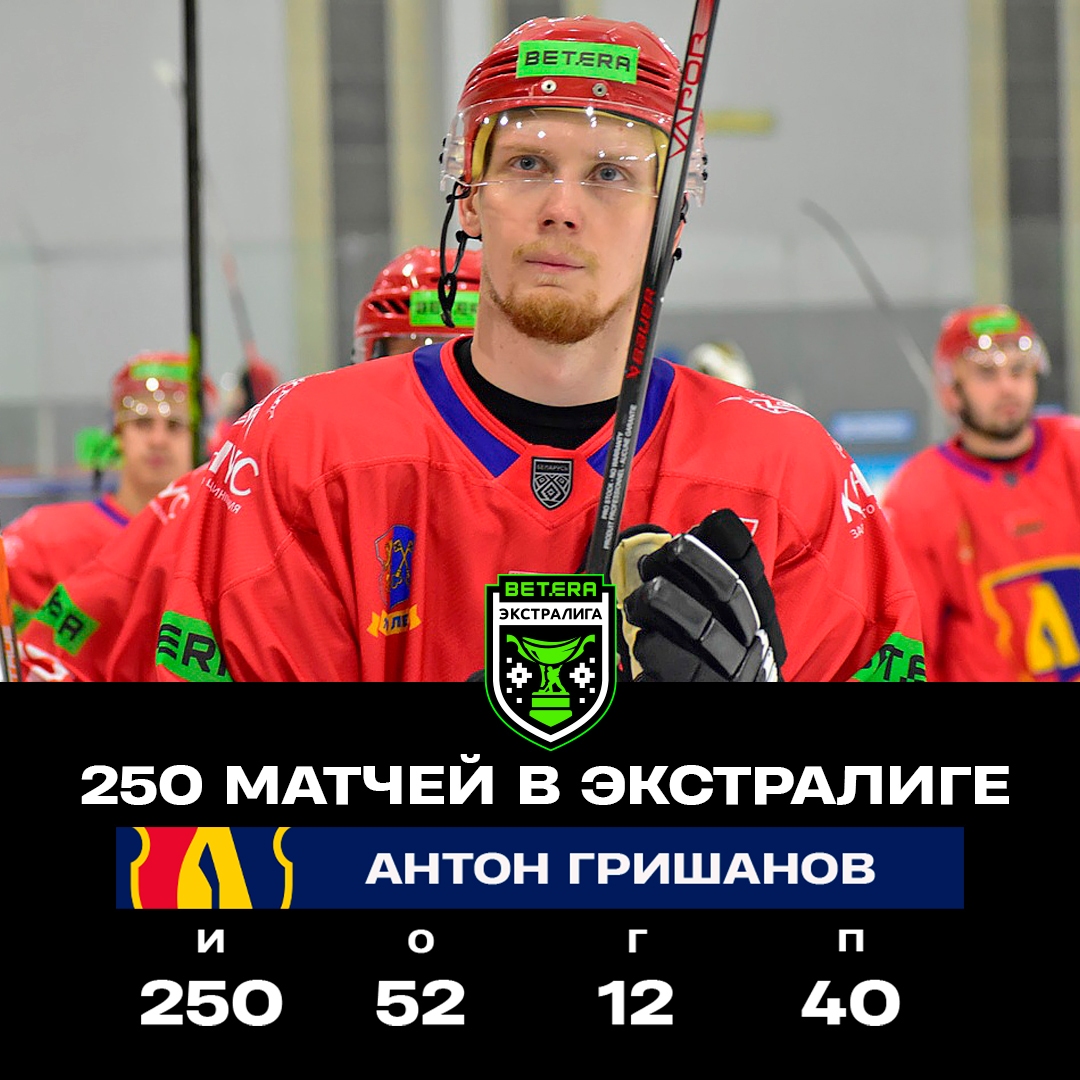 За это время, проведенное в элитном дивизионе чемпионата Беларуси, Антон Гришанов набрал 52 очка: забросил 12 шайб, отдал 40 результативных передач.