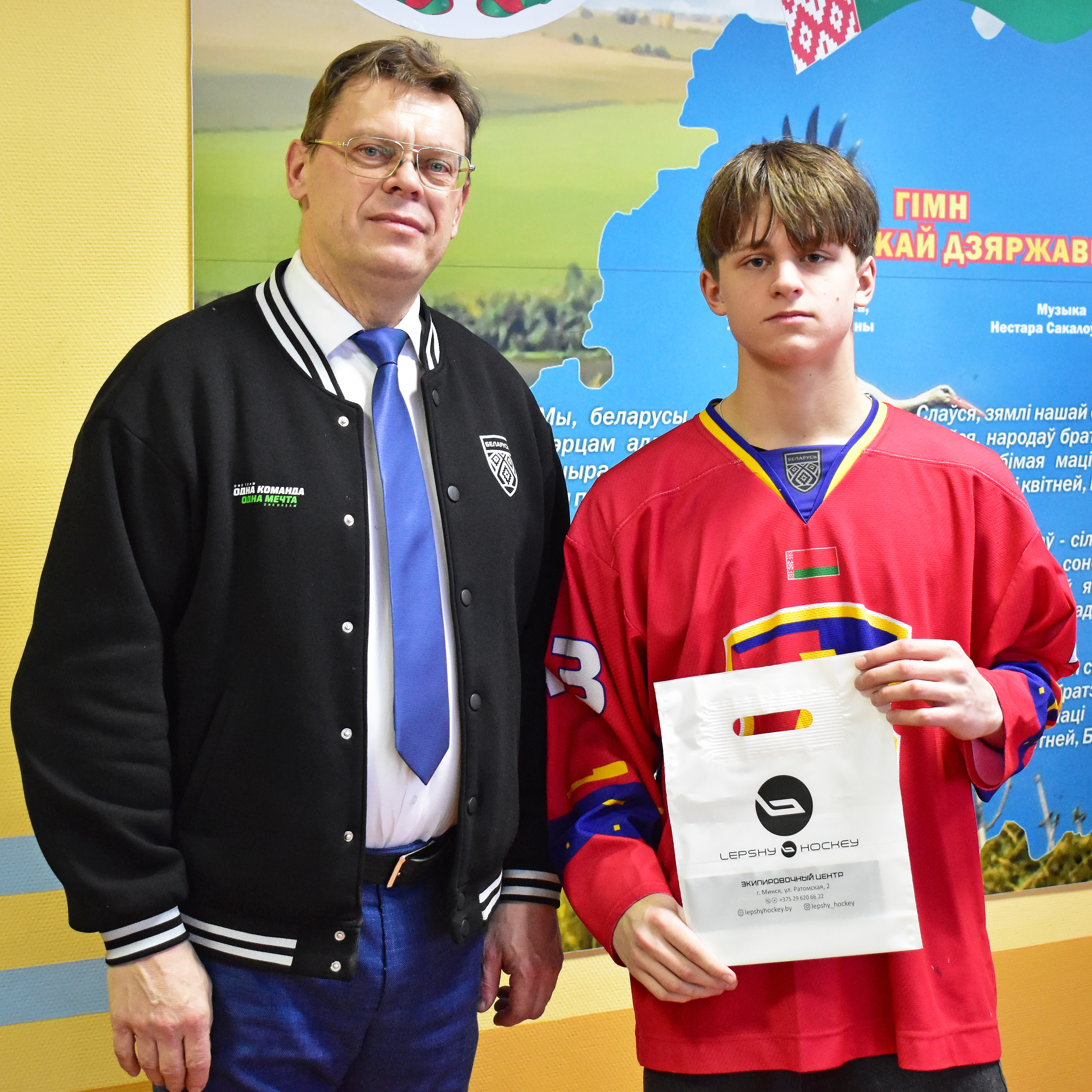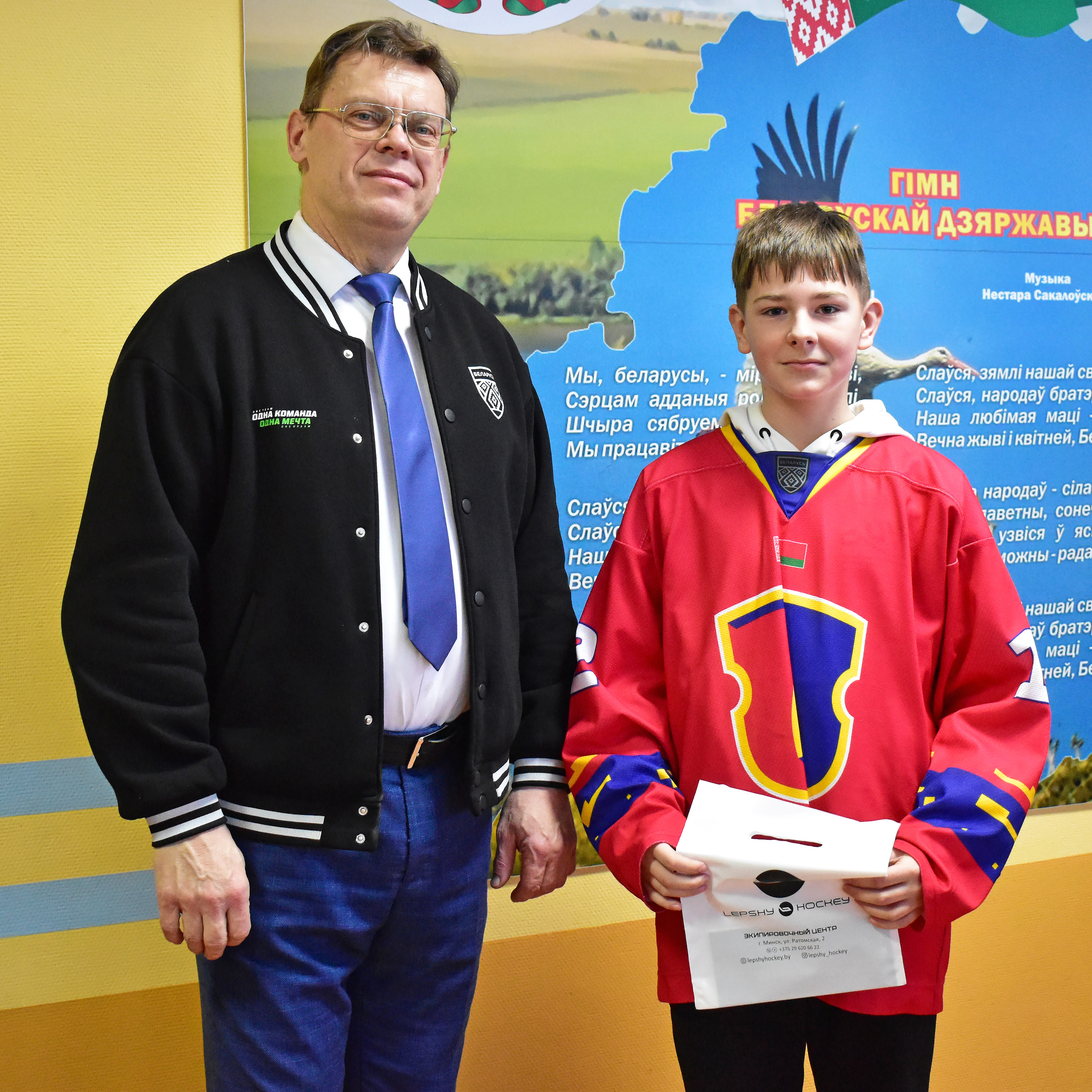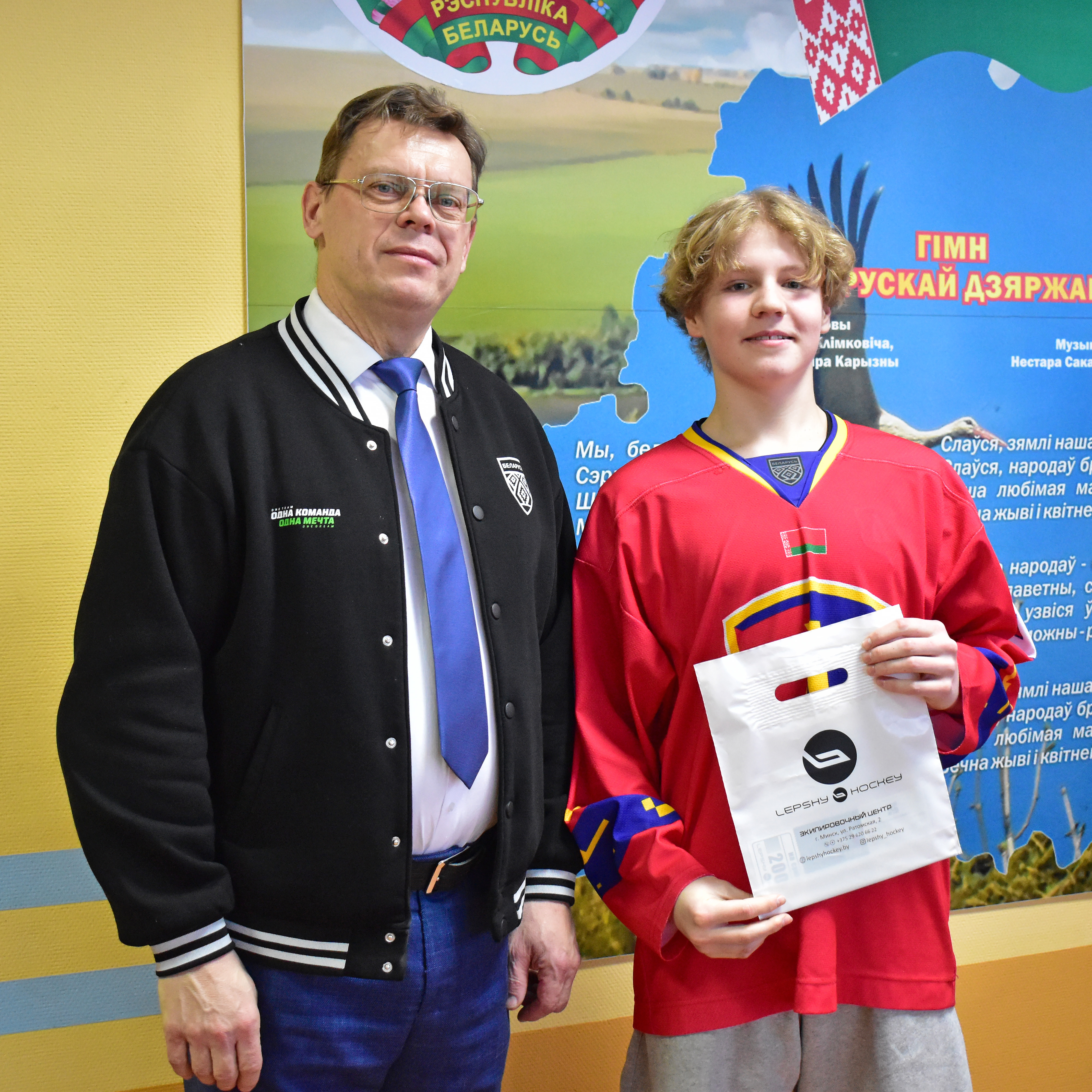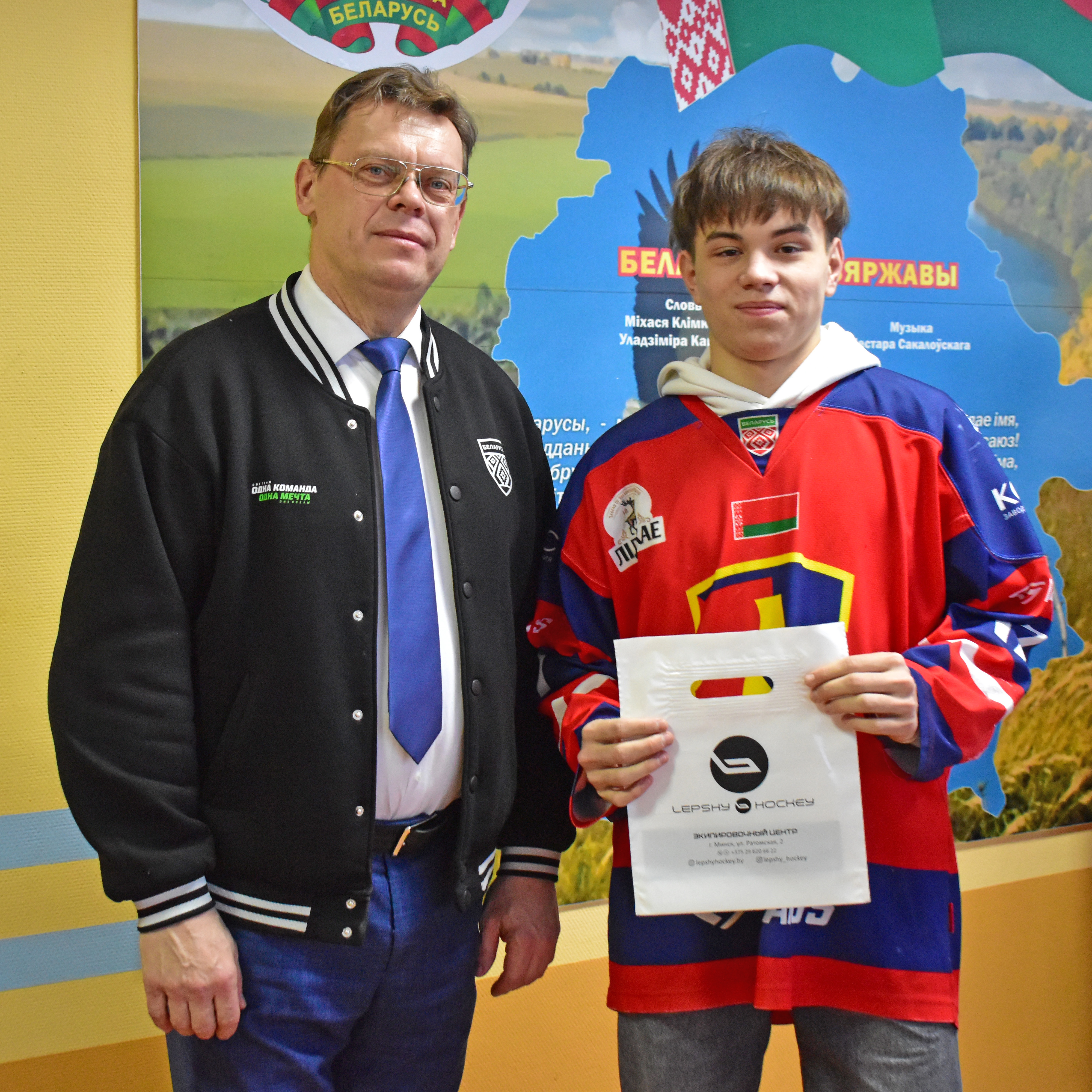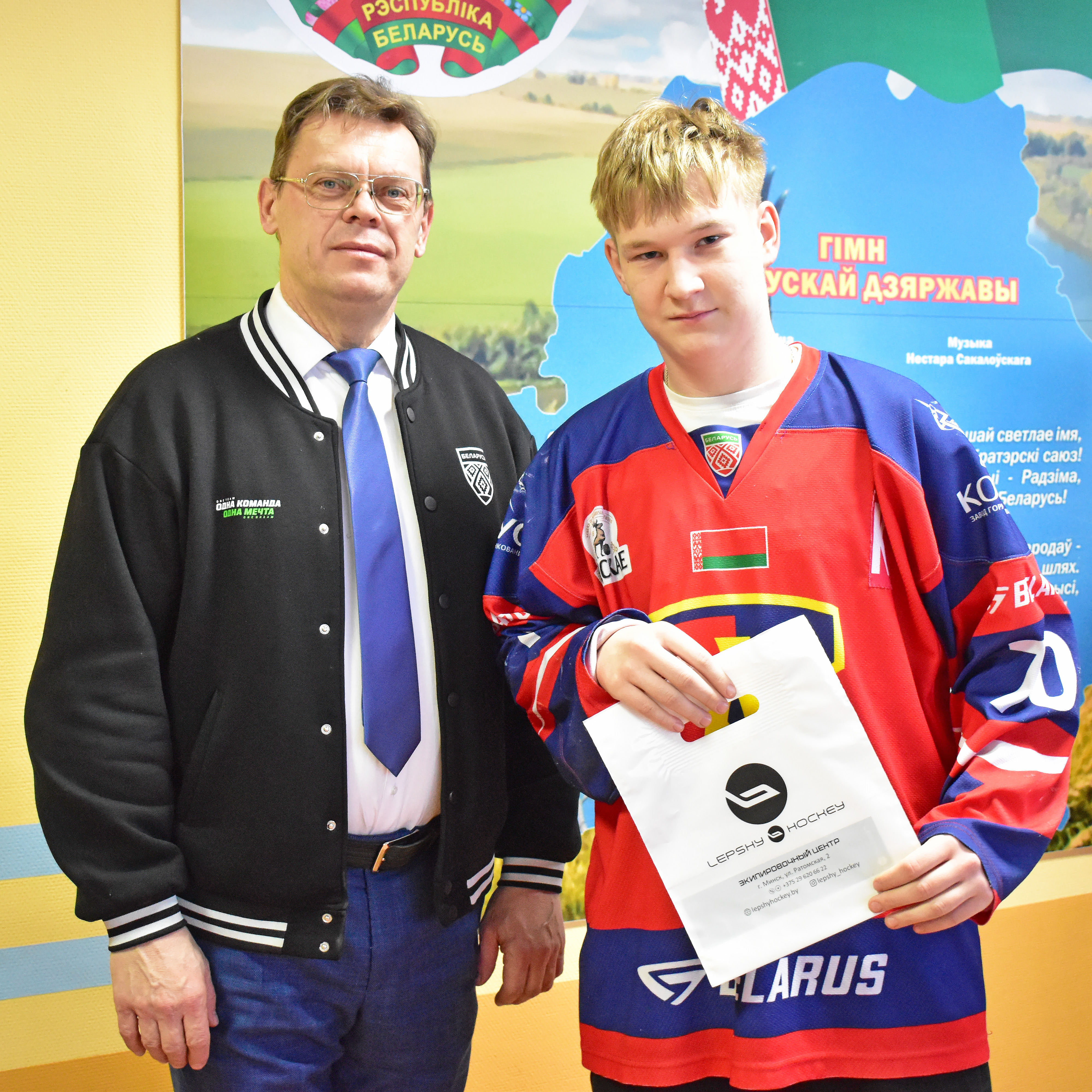 Председатель ГУ «Клуб по хоккею с шайбой “Лида”» Геннадий Владыко лично поздравил парней и вручил им денежные сертификаты на приобретение игрового инвентаря. Спонсором выступила местная компьютерная компания «Онлайн», поддержавшая юных хоккеистов.